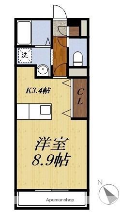 | 間取り詳細 | K(3.4帖)、洋室(8.9帖) | ||