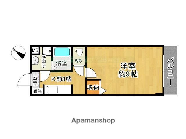 | 間取り詳細 | 洋室(9帖)、K(3帖) | ||