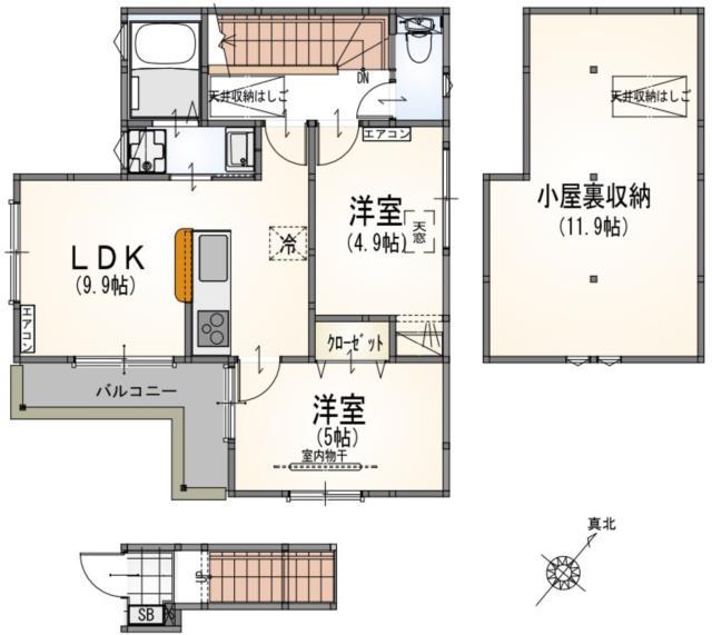 | 間取り詳細 | LDK(12帖)、洋室(5.7帖)、洋室(4.4帖) | ||
