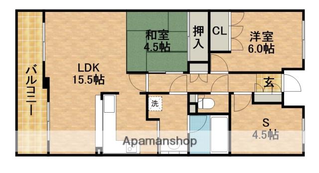 | 間取り詳細 | 和室(4.5帖)、洋室(6帖)、LDK(15.5帖) | ||