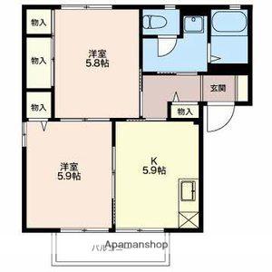 | 間取り詳細 | 洋室(5.8帖)、洋室(5.9帖)、K(5.9帖) | ||