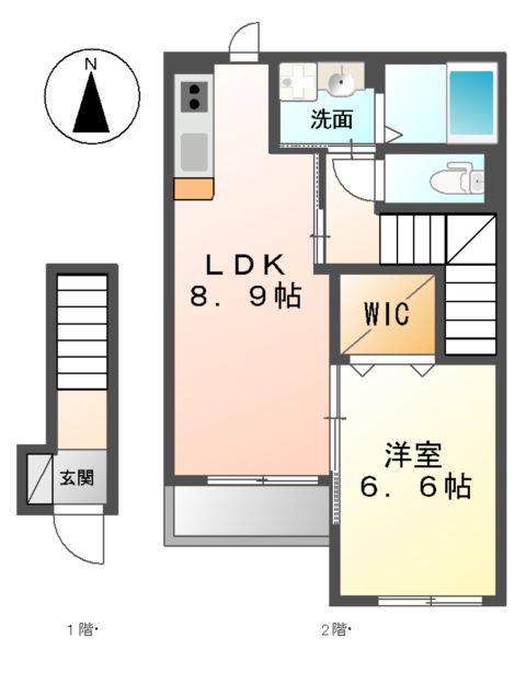 | 間取り詳細 | LDK(8.9帖)、洋室(6.6帖) | ||