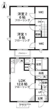 | 間取り詳細 | LDK(12.8帖)、洋室(8帖)、洋室(6帖) | ||