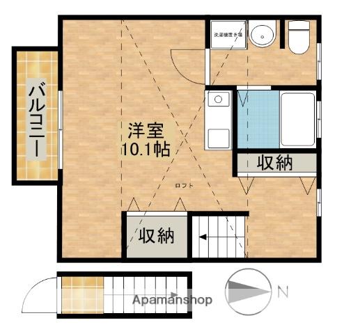 | 設備 | バス・トイレ別、テレビドアホン、システムキッチン、バルコニー、ロフトあり、コンロ:ガス、シャワー、給湯、洗濯機:室内 | ||