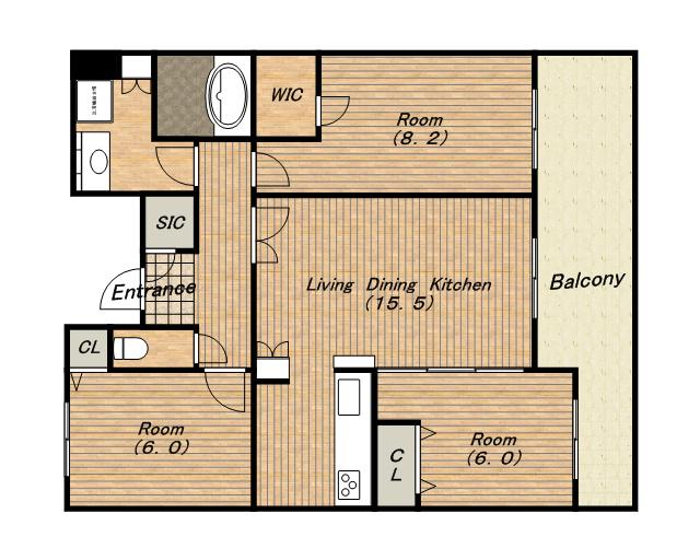 | 間取り詳細 | 洋室(6帖)、洋室(6帖)、洋室(8.2帖)、LDK(15.5帖) | ||
