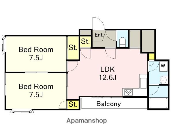 | 間取り詳細 | LDK(12帖)、洋室(7.5帖)、洋室(7.5帖) | ||