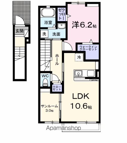 | 間取り詳細 | 洋室(6.1帖)、LDK(10.2帖) | ||