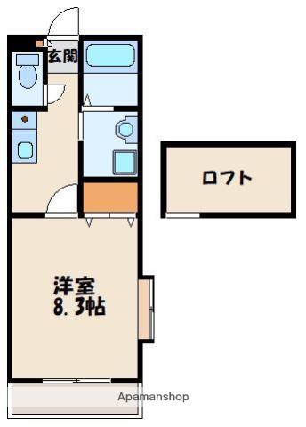 | 設備 | バス・トイレ別、テレビドアホン、インターネット対応、バルコニー、フローリング、ロフトあり、コンロ:ガス、CATV、シャワー、給湯、冷房、洗濯機:室内、閑静な住宅街 | ||