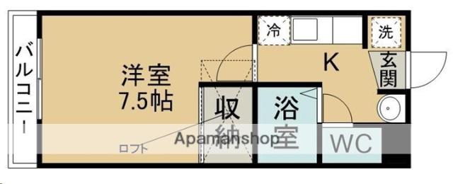 | 間取り詳細 | 洋室(7.5帖)、K(2帖) | ||