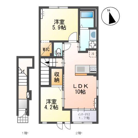 | 間取り詳細 | LDK(10帖)、洋室(4.2帖)、洋室(5.9帖) | ||