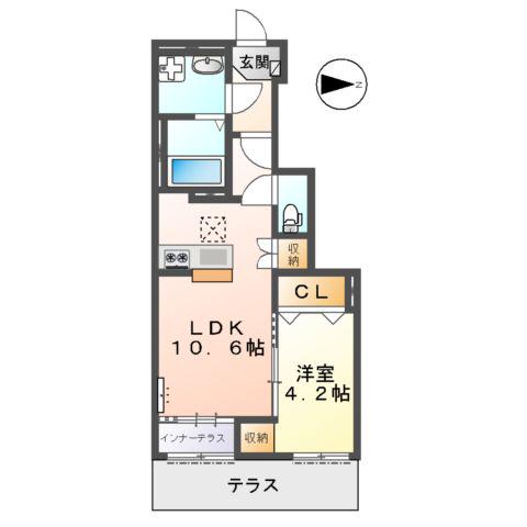 | 間取り詳細 | LDK(10.6帖)、洋室(4.2帖) | ||