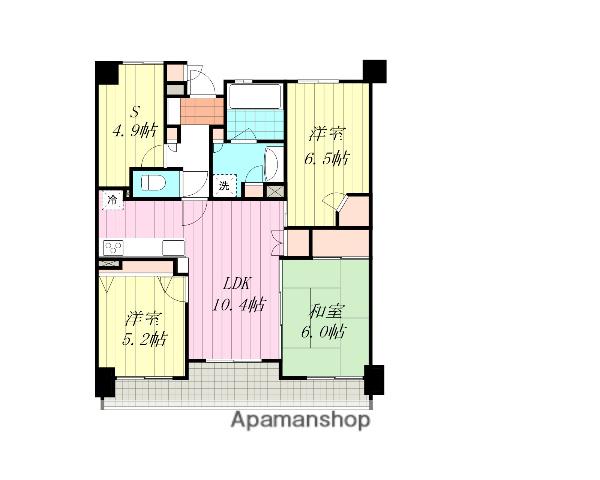 | 間取り詳細 | LDK(10.4帖)、洋室(6.5帖)、洋室(5.2帖)、和室(6帖)、S(4.9帖) | ||