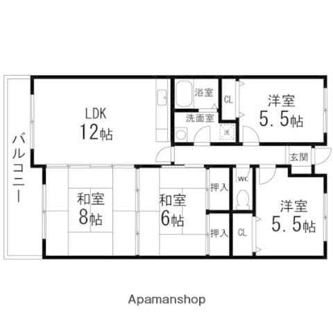 | 間取り詳細 | 洋室(5.5帖)、洋室(5.5帖)、和室(6帖)、和室(8帖)、LDK(12帖) | ||