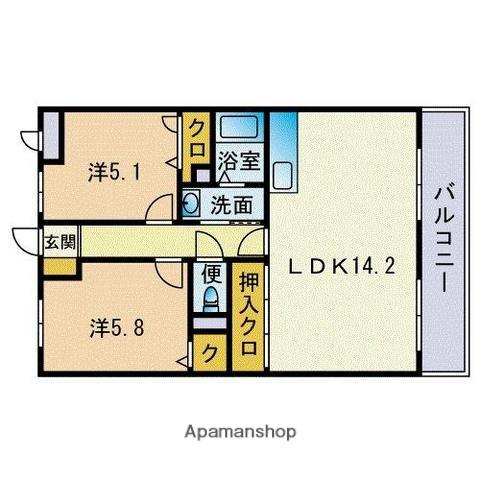 | 間取り詳細 | 洋室(5.8帖)、洋室(5.1帖)、LDK(14.2帖) | ||