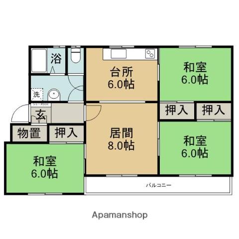 | 間取り詳細 | LDK(14帖)、和室(6帖)、和室(6帖)、和室(6帖) | ||