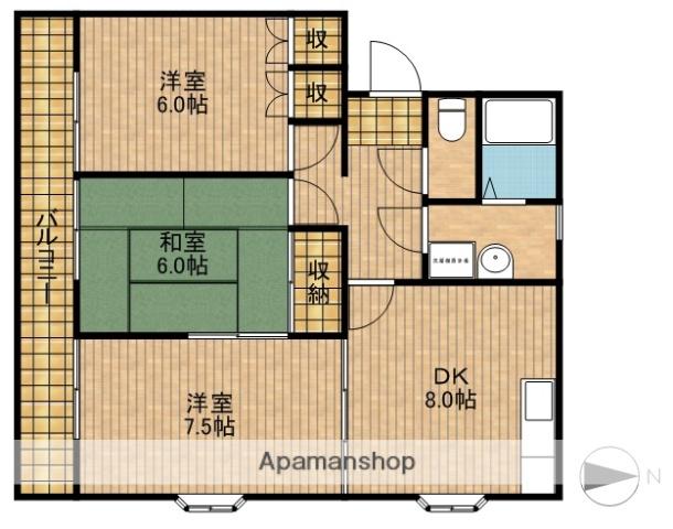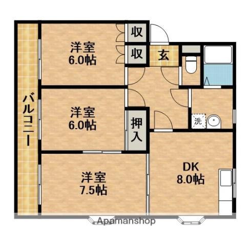 | 間取り詳細 | 和室(6帖)、洋室(7.5帖)、洋室(6帖)、DK(8帖) | ||