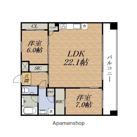 | 間取り詳細 | LDK(22.4帖)、洋室(7.5帖)、洋室(6.2帖) | ||