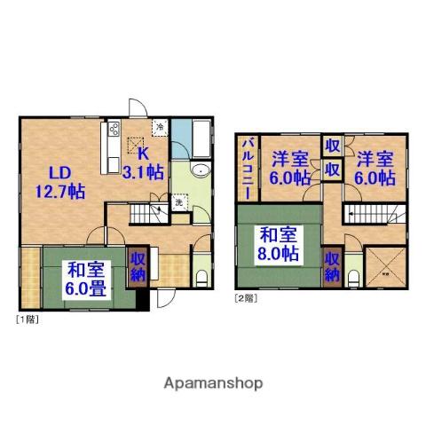 | 間取り詳細 | LD(12.7帖)、K(3.1帖)、和室(6帖)、和室(8帖)、洋室(6帖)、洋室(6帖) | ||