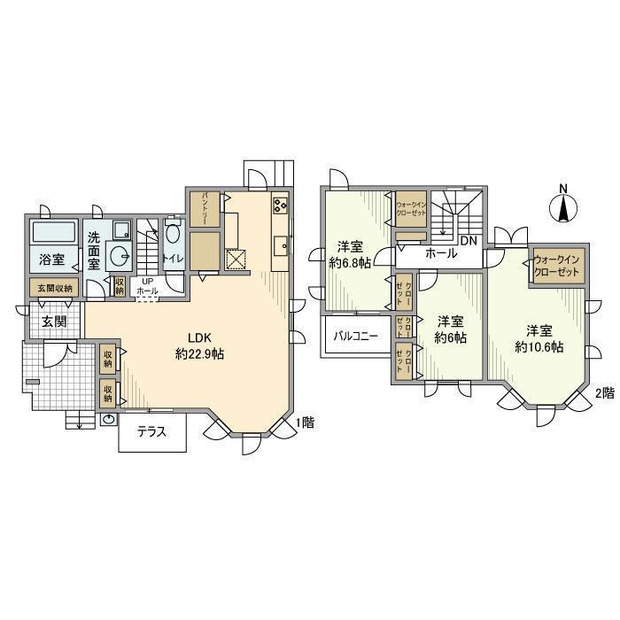 | 間取り詳細 | LDK(22.9帖)、洋室(10.6帖)、洋室(6帖)、洋室(6.8帖) | ||