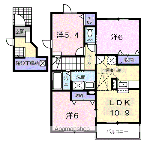 | 間取り詳細 | 和室(6帖)、洋室(6帖)、洋室(5.4帖)、LDK(10.9帖) | ||