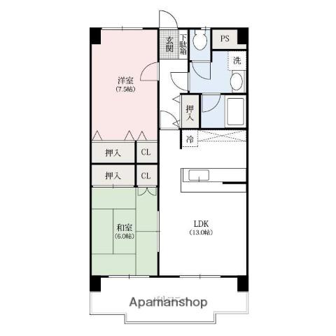 | 間取り詳細 | LDK(13帖)、洋室(7.5帖)、和室(6帖) | ||