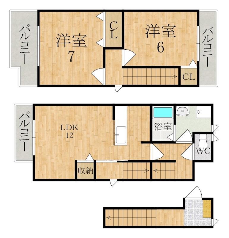 | 間取り詳細 | LDK(12帖)、洋室(6帖)、洋室(7帖) | ||