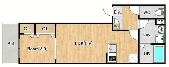 | 間取り詳細 | 洋室(33帖)、LDK(8.9帖) | ||