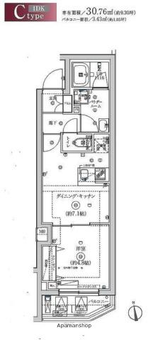 | 間取り | 1DK | 専有面積 | 30.76m2 |