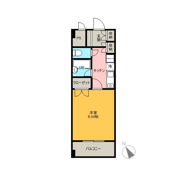 | 間取り詳細 | K(4.1帖)、洋室(8.3帖) | ||