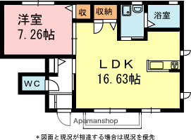| 間取り詳細 | LDK(16.8帖)、洋室(7.4帖) | ||
