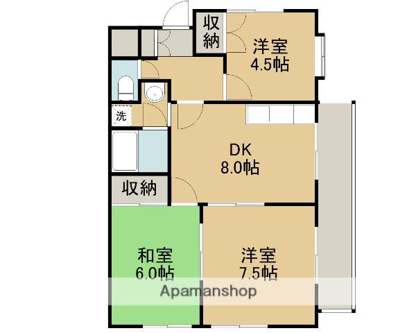 | 間取り詳細 | DK(8帖)、洋室(7.5帖)、洋室(4.5帖)、和室(6帖) | ||