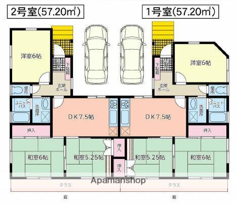 | 間取り詳細 | DK(7.5帖)、洋室(6帖)、和室(6帖)、和室(5.2帖) | ||