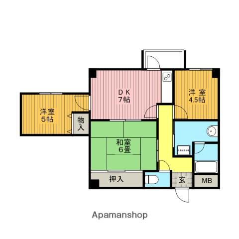 | 間取り詳細 | DK(7帖)、洋室(5帖)、洋室(4.5帖)、和室(6帖) | ||