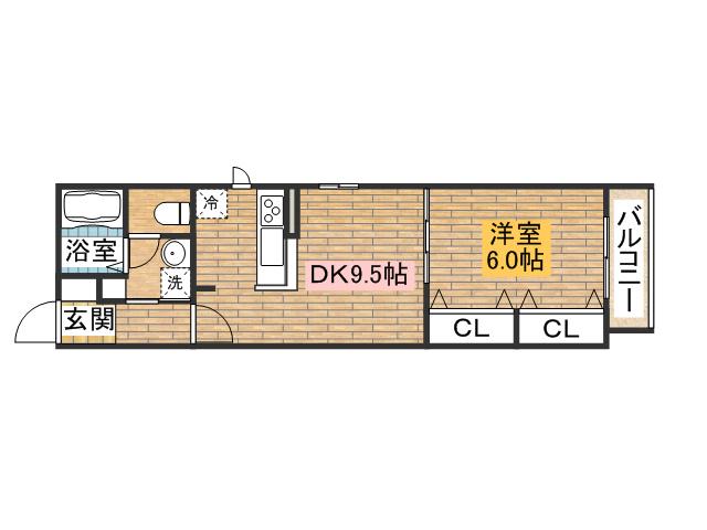 | 間取り詳細 | DK(9.5帖)、洋室(6.6帖) | ||