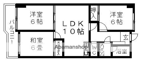 | 間取り詳細 | LDK(10帖)、和室(6帖)、洋室(6帖)、洋室(6帖) | ||