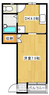 | 間取り詳細 | 洋室(7.5帖)、DK(4.5帖) | ||