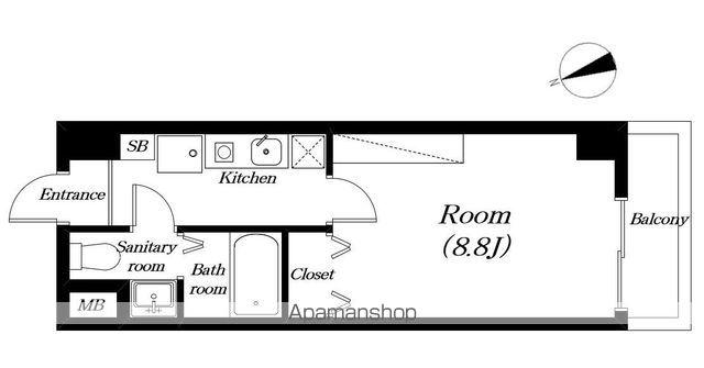 | 間取り詳細 | K(2帖)、洋室(8.8帖) | ||