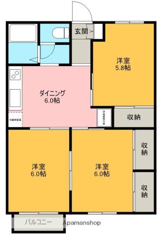 | 間取り詳細 | DK(6帖)、洋室(5.8帖)、洋室(6帖)、洋室(6帖) | ||