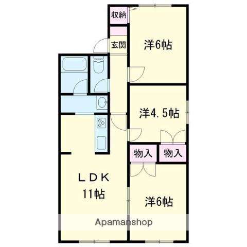 | 間取り詳細 | LDK(11帖)、洋室(6帖)、洋室(4.5帖)、和室(6帖) | ||