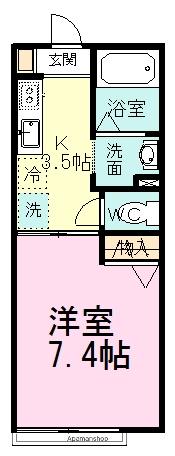 | 間取り詳細 | 洋室(7.4帖)、K(3.5帖) | ||