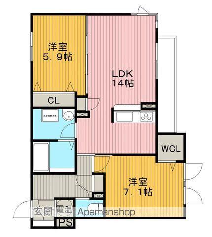 | 間取り詳細 | LDK(14帖)、洋室(7.1帖)、洋室(5.9帖) | ||