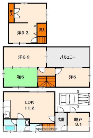 | 間取り詳細 | LDK(11.2帖)、S(3.1帖)、和室(5帖)、洋室(6.2帖)、洋室(5帖)、洋室(9.3帖) | ||