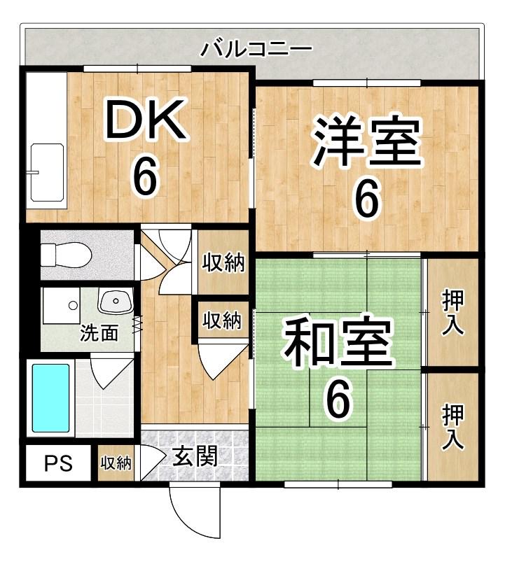 | 間取り詳細 | DK(6帖)、洋室(6帖)、和室(6帖) | ||