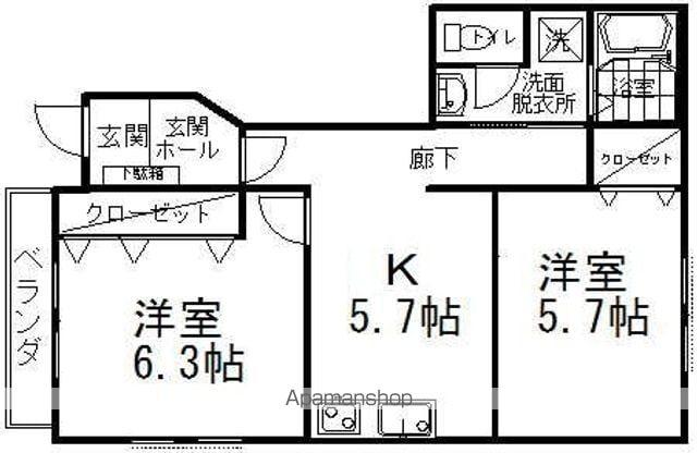 ファミーユ松原B棟の賃貸物件情報(2DK/1階)