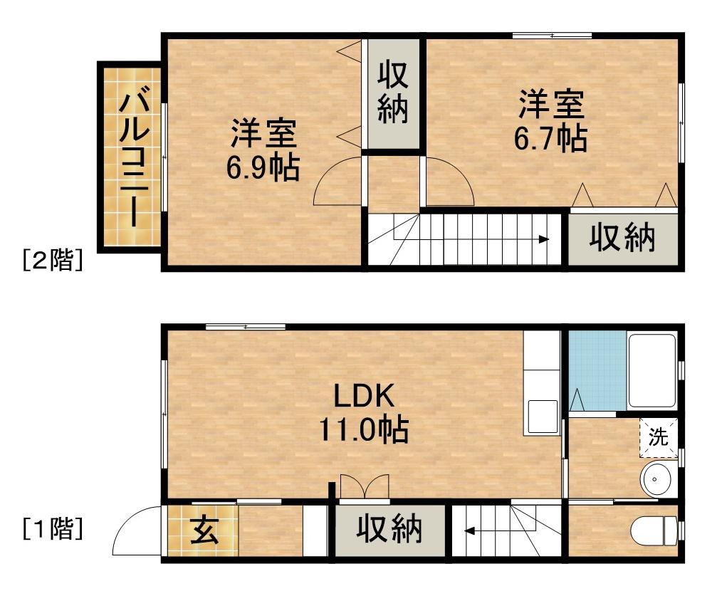 | 間取り詳細 | 洋室(6.7帖)、洋室(6.9帖)、LDK(11帖) | ||