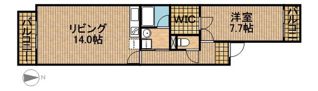 | 間取り詳細 | 洋室(7.7帖)、LDK(14帖) | ||