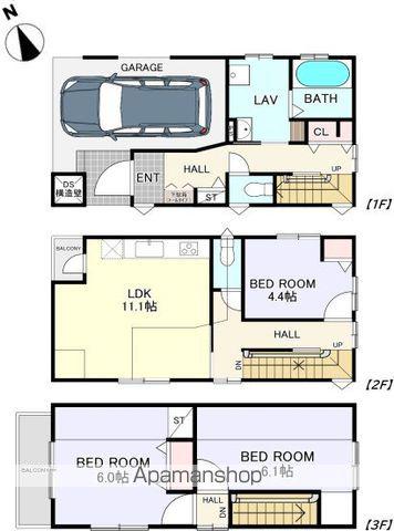 | 間取り詳細 | LDK(11.1帖)、洋室(4.4帖)、洋室(6帖)、洋室(6.1帖) | ||