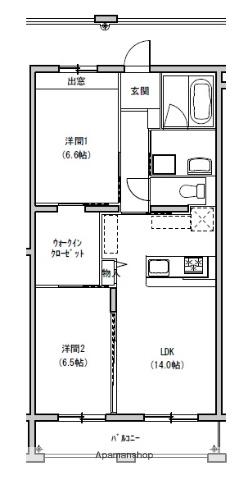 | 間取り詳細 | LDK(14帖)、洋室(6.6帖)、洋室(6.5帖) | ||
