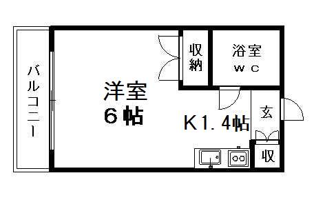 | 間取り詳細 | K(1.4帖)、洋室(6帖) | ||
