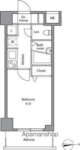 | 間取り詳細 | K(2.5帖)、洋室(6.3帖) | ||